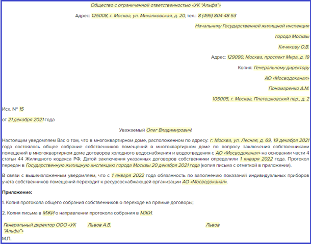 Жители перешли на прямые договоры с РСО. Чтобы в таком случае обезопасить себя от штрафа за неразмещение информации в ГИС ЖКХ, сразу после общего собрания о переходе на прямые договоры направьте уведомление в адрес ГЖИ. В копию письма поставьте РСО, с которым жители перешли на прямой договор. В тексте укажите, что теперь заполнять раздел с показаниями ИПУ — это обязанность ресурсника, а также обозначьте срок.