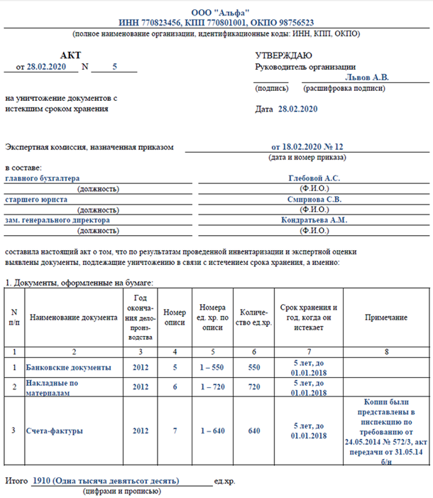 Храните в течение трех лет со дня регистрации обращения жителей и иных лиц, а также копии ответов на них (п. 38 Правил № 416). Когда у документа истекает срок, его можно уничтожить. Закон эту процедуру не регламентирует. Чтобы по ошибке не уничтожить документы раньше времени, проведите ревизию и составьте акт об уничтожении документов с описью.
