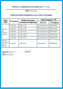 График уборки и дезинфекции подъездов и других мест общего пользования МКД