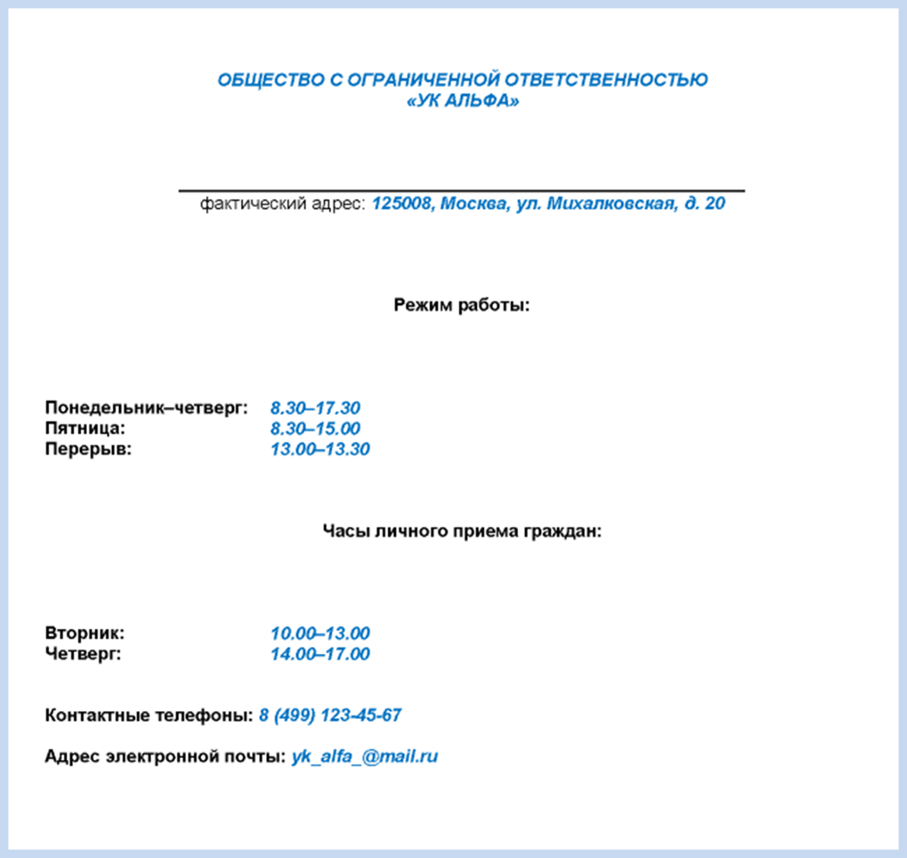 Около входной двери в офис УО разместите вывеску с краткой информацией об организации. Пример вывески мы показали на рисунке 2.