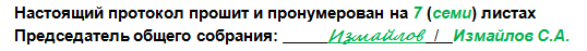 Рисунок 3. Пример подписания протокола общего собрания
