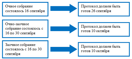 Рисунок 5. Примеры расчета срока оформления протокола общего собрания