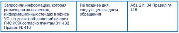 УО, ТСЖ, ЖСК должны отвечать на все обращения, в том числе не связанные с раскрытием информации и качеством ЖКУ (п. 36 Правил № 416). Назовем эту категорию «общие вопросы».