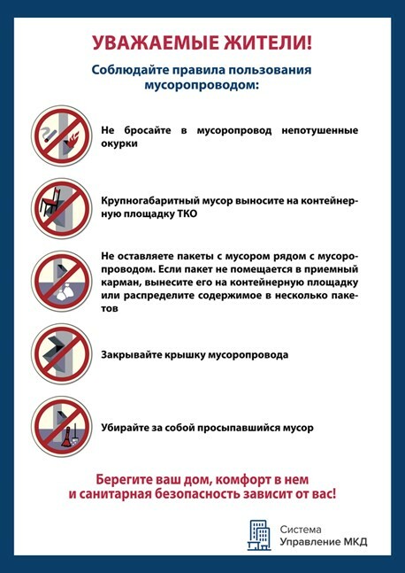Эксперты системы УМД разработали наглядное объявление о правилах пользования мусоропроводом. Скачайте его и разместите в подъездах и других местах общего пользования.