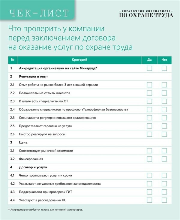 Требования к подрядчику собрали в чек-листе. С ним определите, можно ли доверять сторонней компании. Поставьте галочки в колонках «Да» и «Нет». Если большинство ответов «Да» — подрядчик подходит для сотрудничества. Чек-лист можно дополнить своими критериями в зависимости от специфики необходимых задач вашей организации.