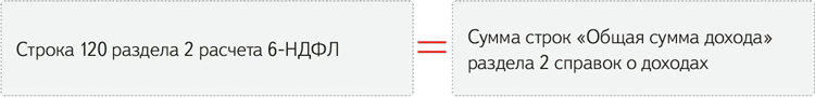 Общая сумма дохода. Сумму начисленного дохода в строке 120 раздела 2 годового 6-НДФЛ, налоговики сопоставят с доходами из справок о доходах:
