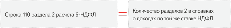 Численность физлиц, которые получили доход. Число получателей доходов в строке 110 раздела 2 годового 6-НДФЛ инспекторы сопоставят с количеством разделов 2, которые есть в каждой справке о доходах физлиц: