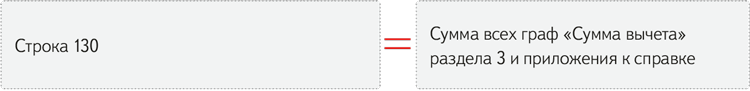 Общая сумма вычетов. Инспекторы сверят сумму вычетов в строке 130 «Сумма вычетов» раздела 2 расчета с общей суммой вычетов в разделах 3 справок о доходах: