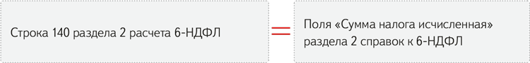 Общая сумма исчисленного НДФЛ. Строку 140 «Сумма налога исчисленная» раздела 2 расчета 6-НДФЛ инспекторы сопоставят с суммой всех граф «Сумма налога исчисленная» раздела 2 справок о доходах к 6-НДФЛ по каждой ставке: