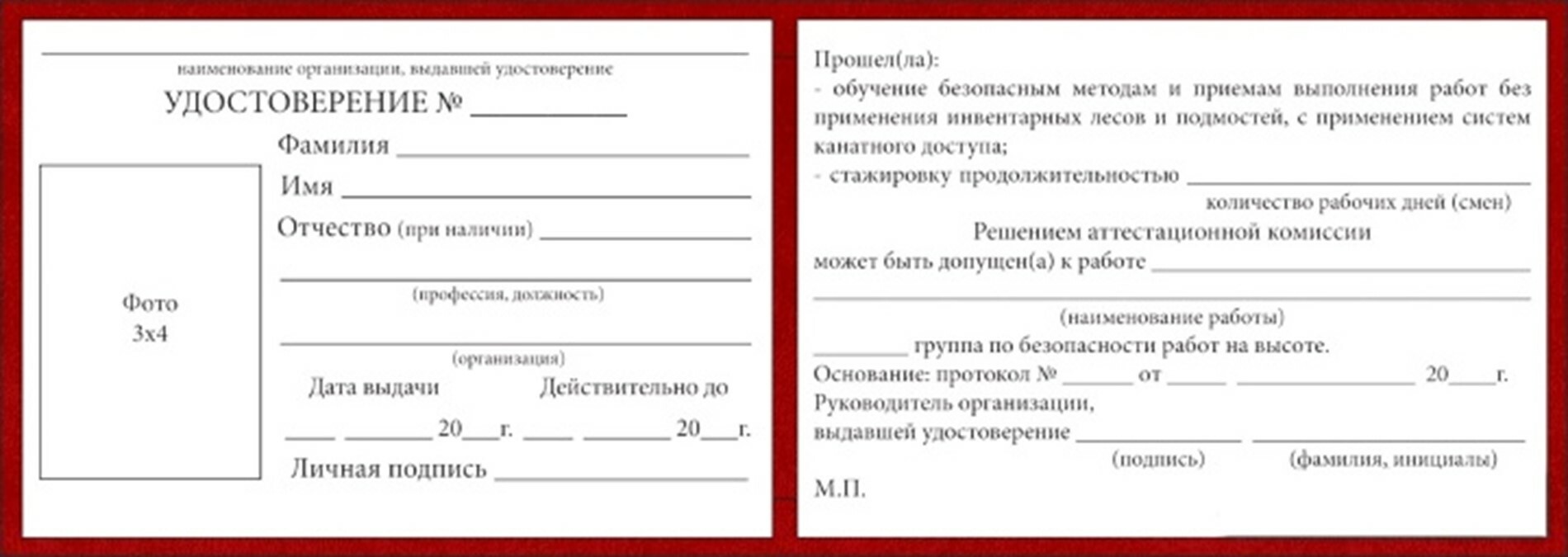 Рисунок 1. Удостоверение о допуске к работам на высоте