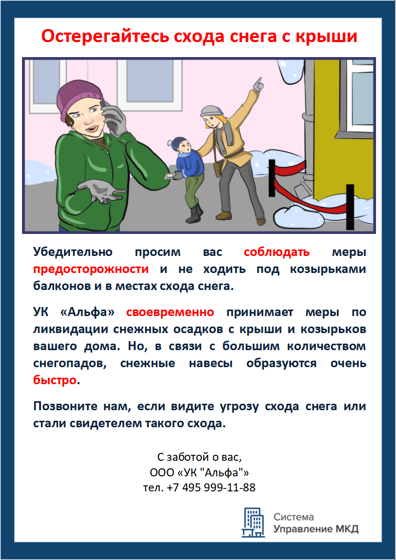 Сезонные объявления об опасности схода снега и льда с кровли МКД