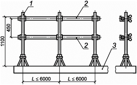 Страховочное ограждение устанавливают непосредственно на границе перепада высот или на расстоянии до 0,3 м от края для предотвращения падения с высоты работника, если он потеряет равновесие.