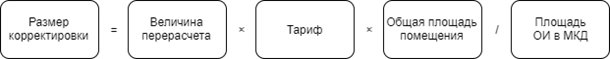 Чтобы рассчитать сумму корректировки платы за КР на СОИ для помещения в МКД, воспользуйтесь формулой: