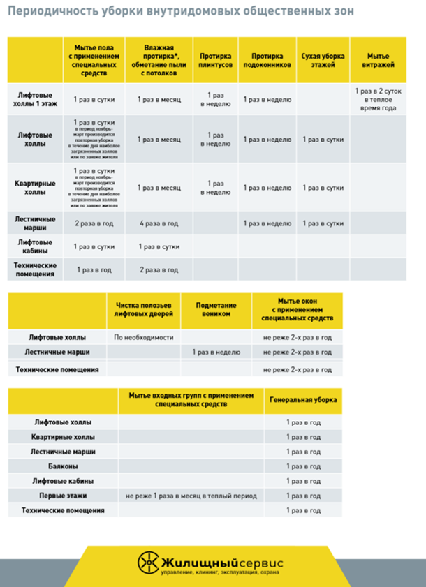 Укажите, что для расчистки снега у УО есть трактор, а полы в подъездах моют с применением определенной бытовой химии. В этом разделе для наглядности сделайте таблицу с указанием периодичности уборки по зонам или покажите это же в виде иллюстрации.