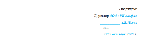 В шапке также оставьте место для блока «Утверждаю». О том, кто и как утверждает план-график, читайте в отдельном разделе.