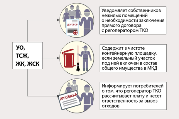 УО, ТСЖ, ЖСК не должны заключать договор с регоператором ТКО, если у регоператора есть прямые договоры с собственниками.