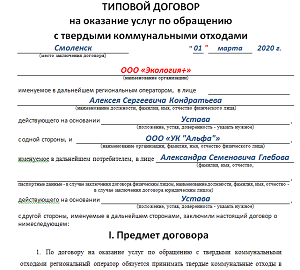 Регоператор ТКО заключает с УО, ТСЖ, ЖСК договор на оказание услуг по обращению с ТКО по форме из постановления Правительства от 07.03.2025 № 293. При этом Правительство утвердило не примерную форму, а типовой договор на оказание услуг по обращению с ТКО. Такой типовой договор относят к категории публичных, их условия стороны обязаны исполнять (ч. 4 ст. 426 ГК).