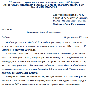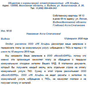 Мы подготовили образцы ответов на заявления собственников сделать перерасчет платы за ТКО (рисунок 6).