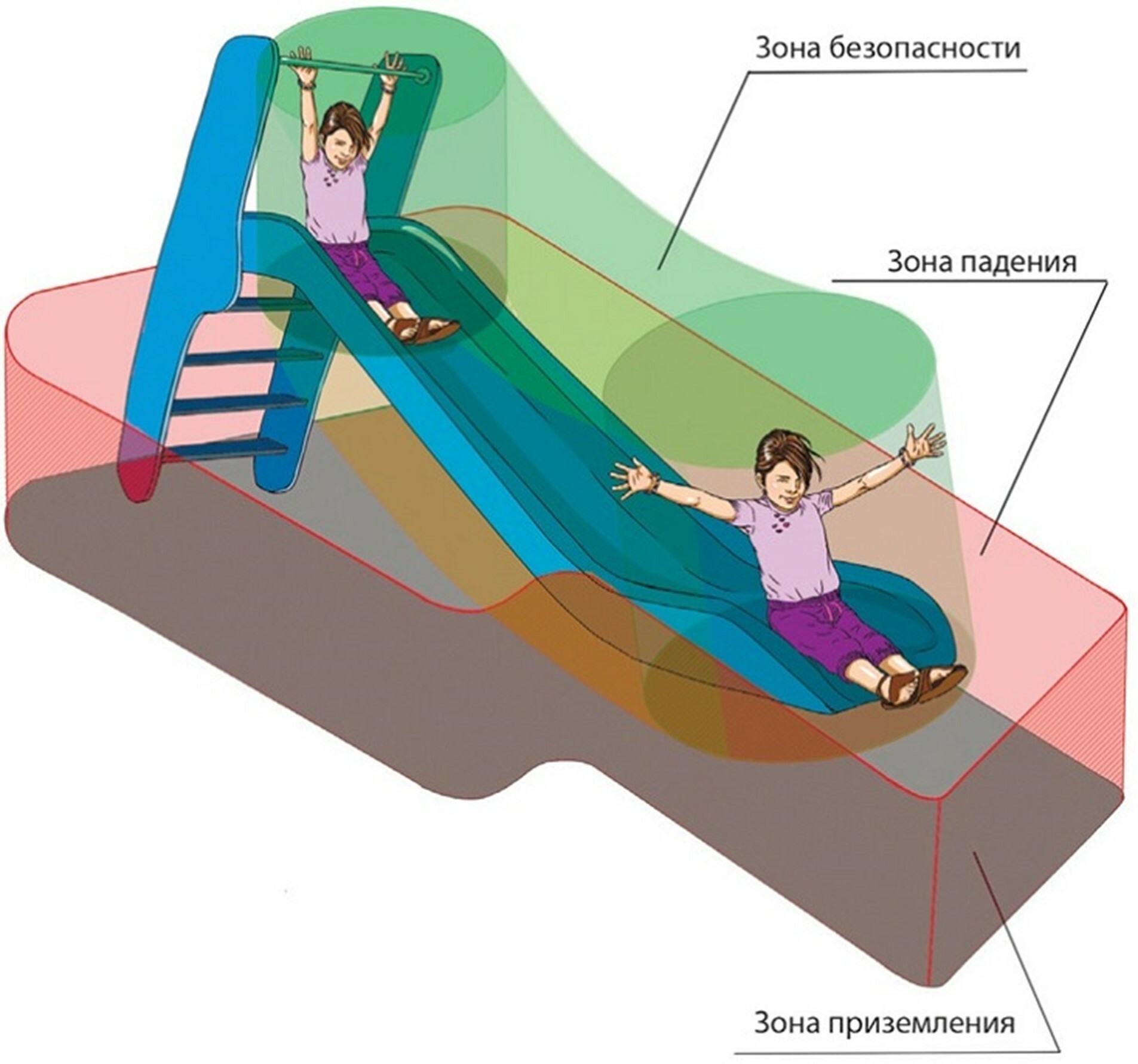Правила эксплуатации детской площадкой индивидуальны и зависят от ее комплектации. Требования безопасности к объектам детской площадки производители указывают в инструкциях или другой сопроводительной документации (см. рисунок).