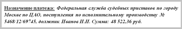 Отследить поступления от пристава можно также по выписке с расчетного счета. По поступлениям от судебных приставов, в выписке будет присутствовать следующая запись: