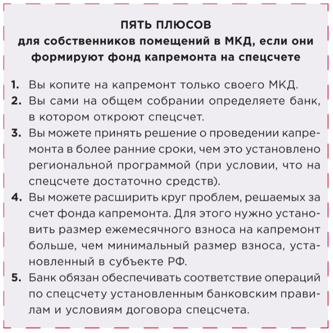 Стоит отдельно рассказать жителям, кто может быть владельцем спецсчета и в каком банке открыть счет. Владельцем может стать УО, ТСЖ, ЖСК или региональный оператор. Важно ответить на вопросы и объяснить жителям, что расходовать деньги со спецсчета можно только на капремонт и только по строгим правилам, установленным Жилищным кодексом.