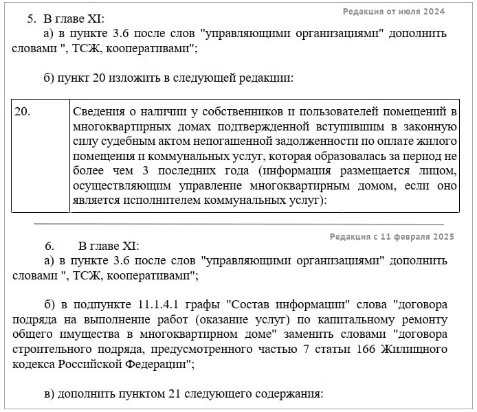 Саморегулируемая организация В августе мы писали о том, что Минстрой РФ решил скорректировать не вступивший на тот момент приказ № 79/пр о ГИС ЖКХ. Проект пока так и не принят, но в него внесены важные корректировки, касающиеся УО и ТСЖ. Их прокомментировала наш эксперт по работе в системе Маргарита Кобко. Приказ № 79/пр начал действовать 1 сентября 2024 года, но ещё в августе Минстрой России вынес на общественное обсуждение проект изменений в него (ID 149589). Маргарита Кобко пристально следила за движением документа, который должен вступить в силу 1 сентября 2025 года, но пока находится на ОРВ. При этом эксперт отметила, что 11 февраля авторы изменили текст корректировок, в том числе в гл. XI: «Согласно Правилам № 1055, УО и ТСЖ должны вносить в систему реестры с данными о провайдерах. Эту обязанность пропишут и в приказе № 79/пр: там появится пункт 21, – отметила Маргарита Кобко. – Но в личных кабинетах поставщиков соответствующая вкладка ещё не появилась. Возможно, доступ к ней откроется 1 марта. Будем следить за обновлениями ГИС ЖКХ». Второе важное изменение в проекте касается информации о должниках. Изначально Минстрой РФ собирался обязать исполнителей ЖКУ вести в системе реестр сведений о задолженности.
