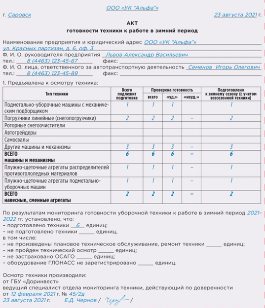 Правила оформления акта устанавливает пункт 7 Правил № 103. Пример заполненного акта проверки готовности смотрите в презентации в конце статьи.