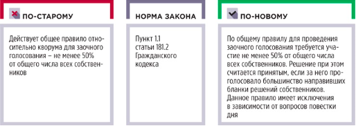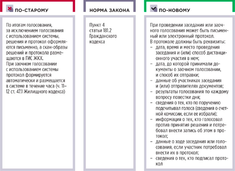 Еще в Гражданском кодексе закрепили право комбинировать заочное голосование и заседание, если это предусматривает закон. В сфере управления МКД закон это уже предусматривает: в Жилищном кодексе есть очно-заочное голосование. Значит, в этой части для УО, ТСЖ, ЖСК, ЖК ничего не меняется.