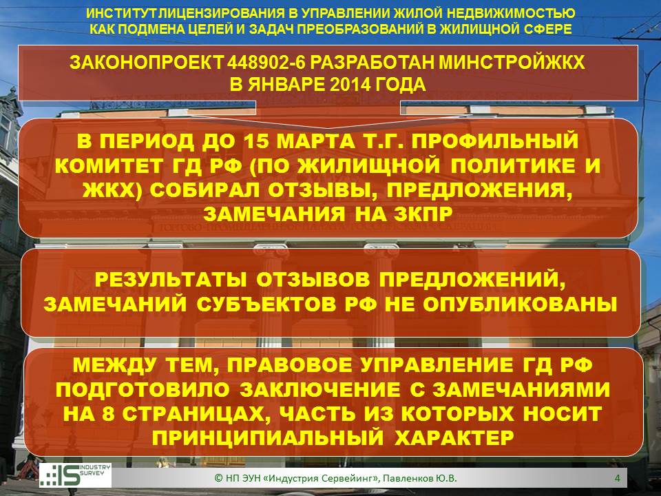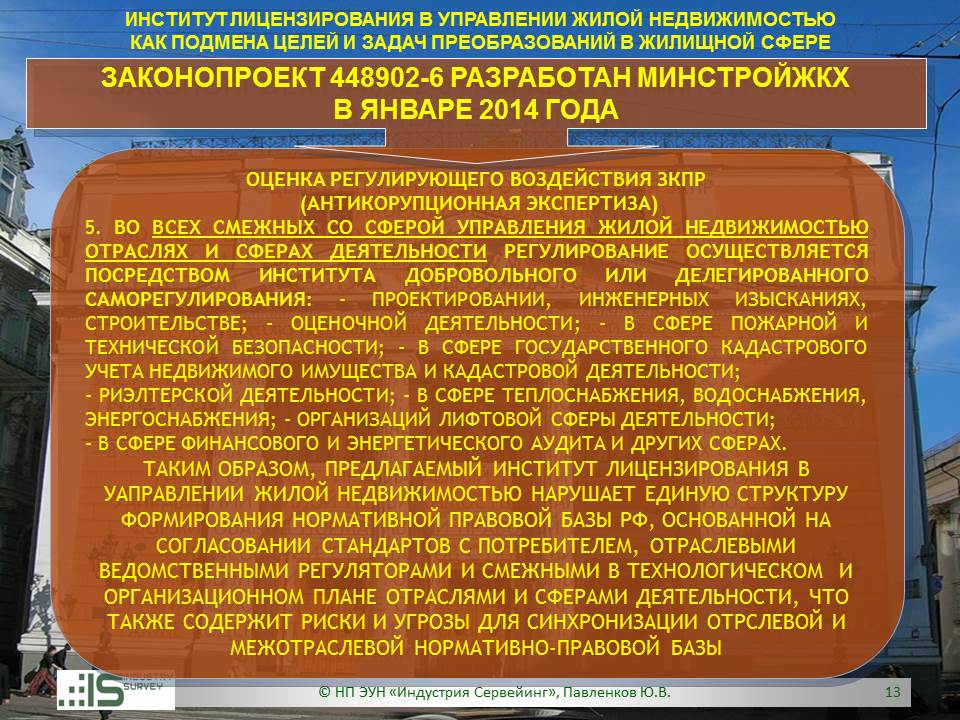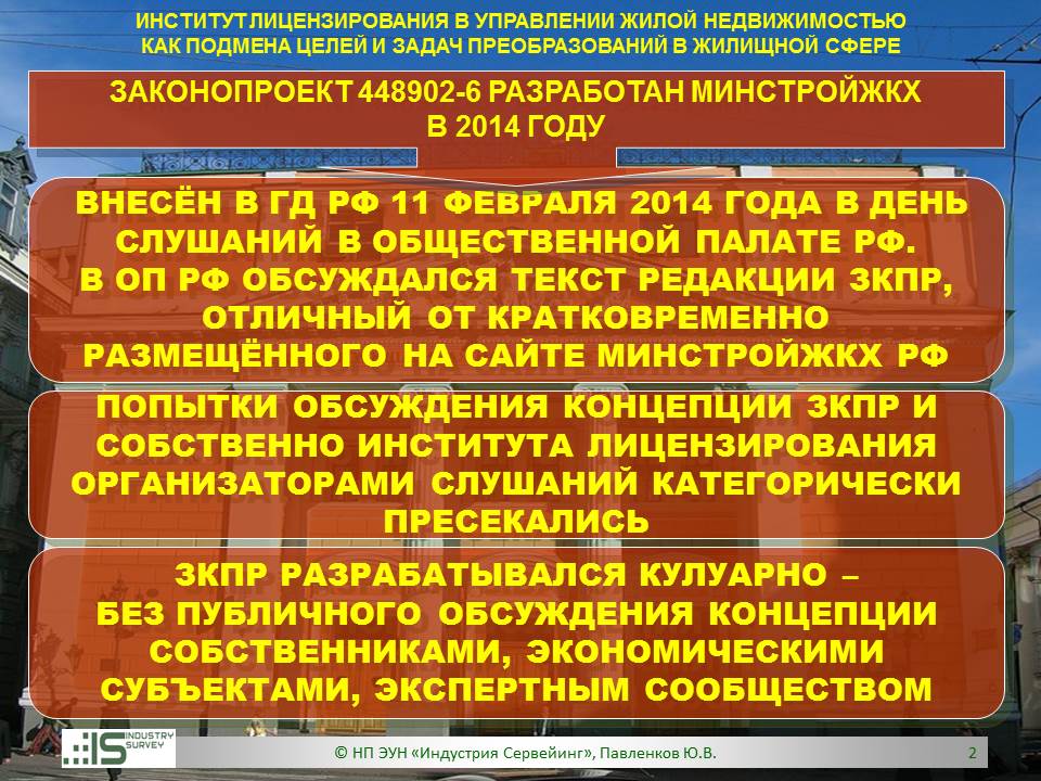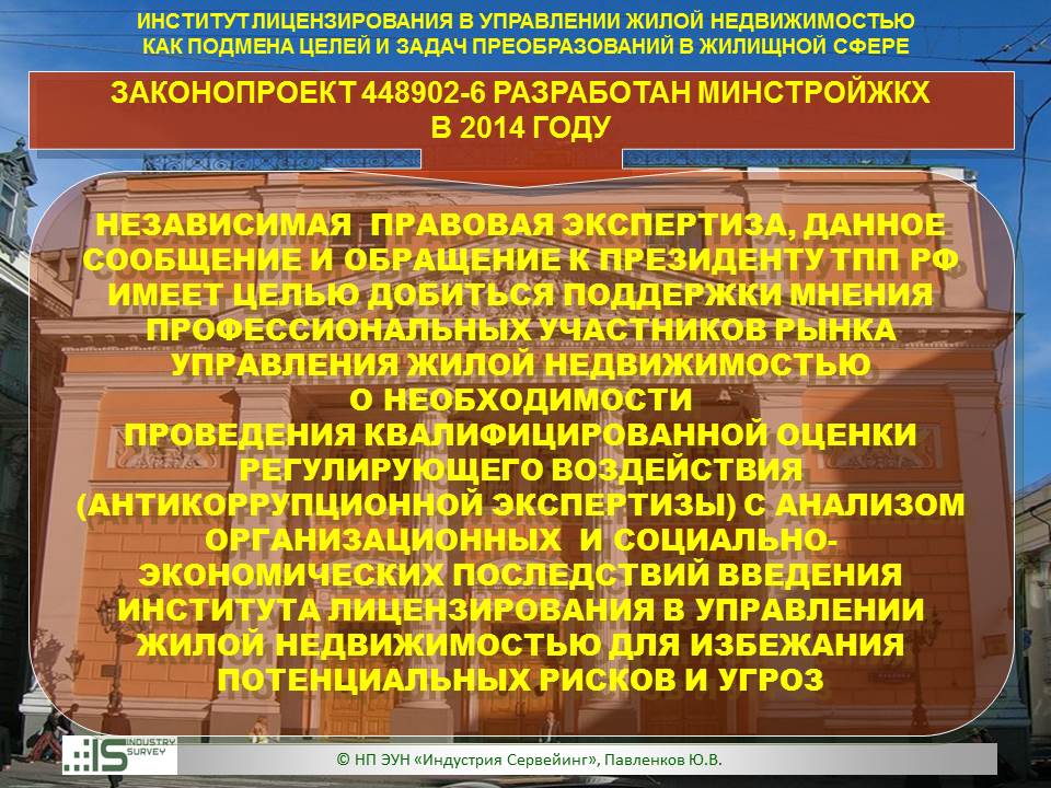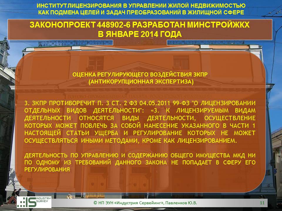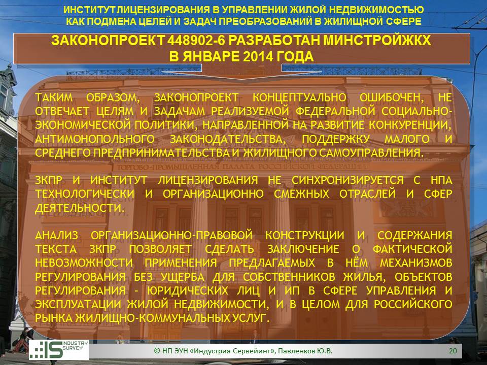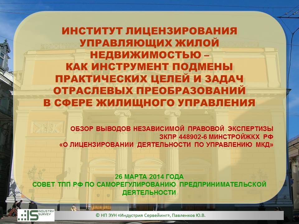 Презентация на Совете ТПП РФ по СРО 26 марта 2014 г. Обзор НПЭ ЗКПР № 448902-6 "О лицензировании деятельности по управлению МКД"