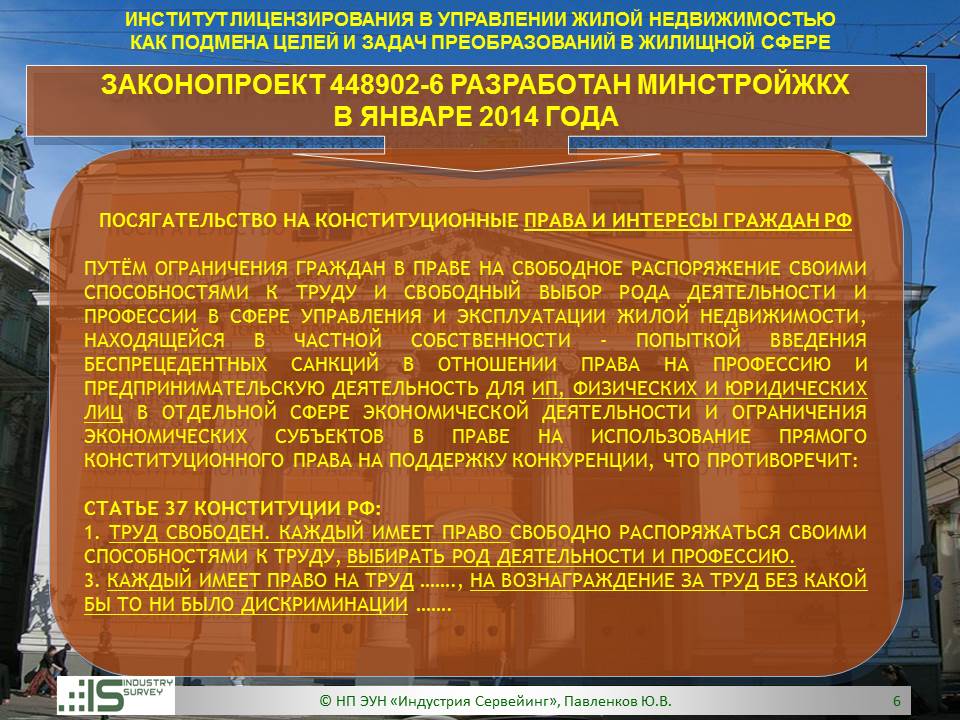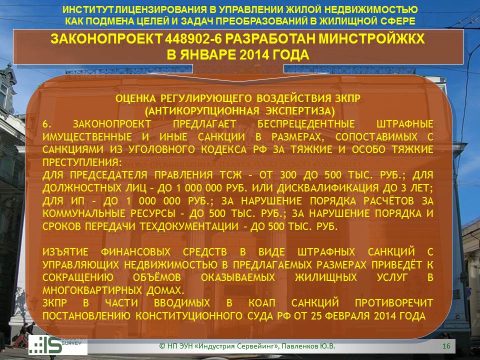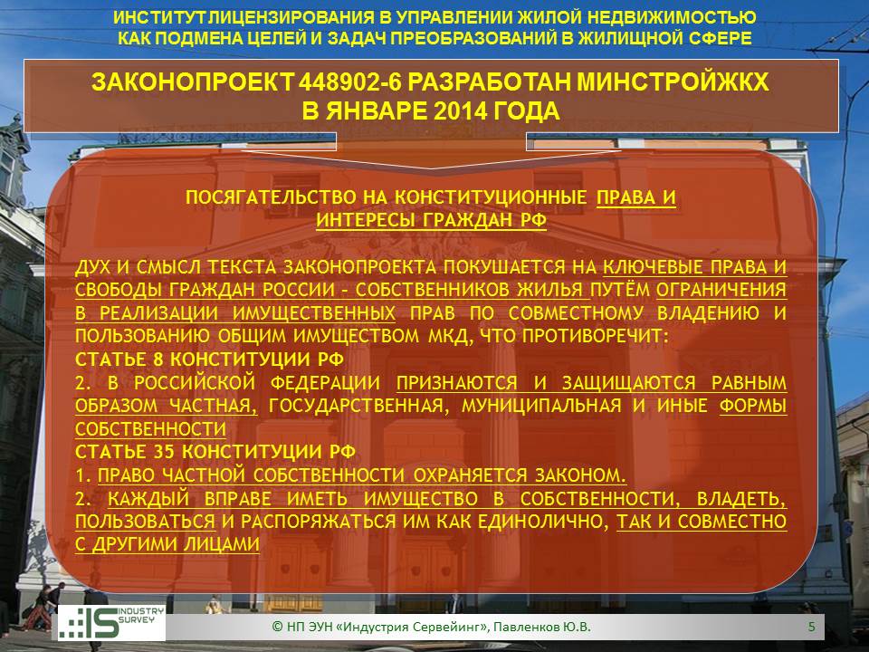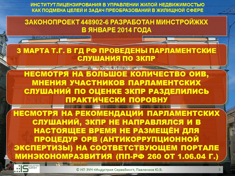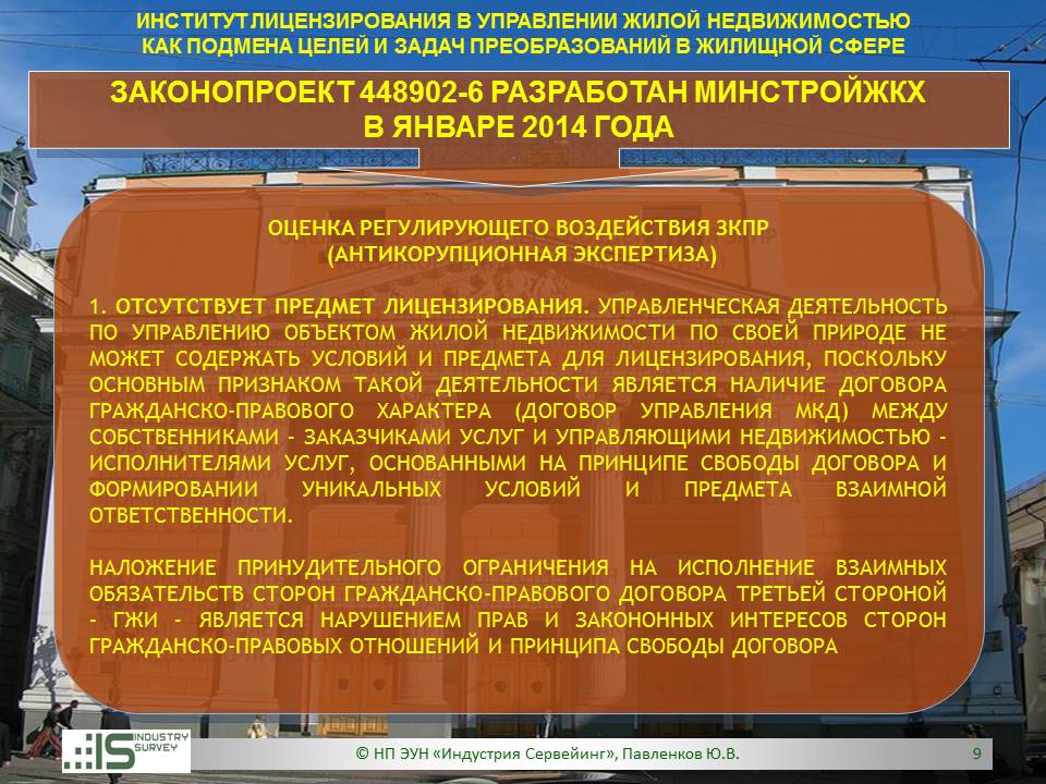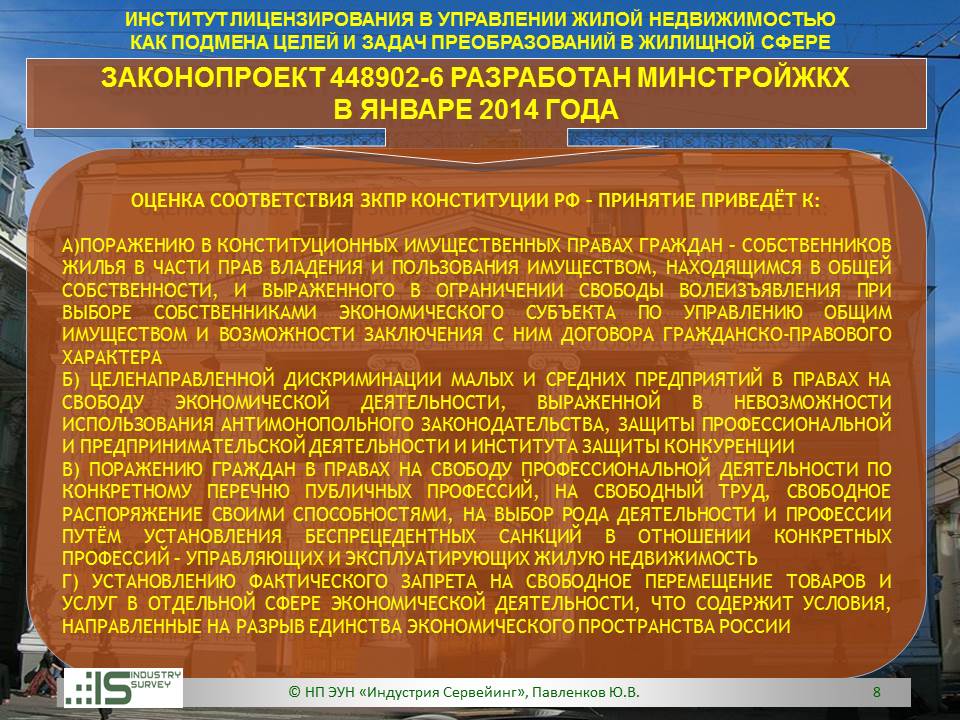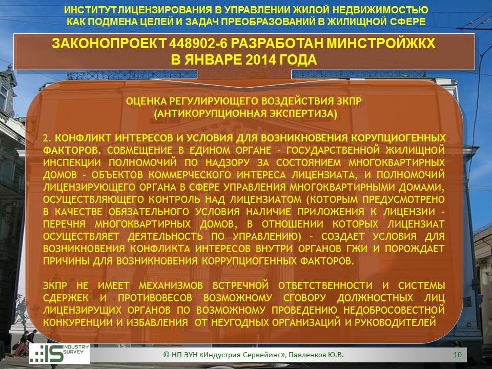 Презентация на Совете ТПП РФ по СРО 26 марта 2014 г. Обзор НПЭ ЗКПР № 448902-6 "О лицензировании деятельности по управлению МКД"