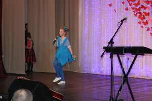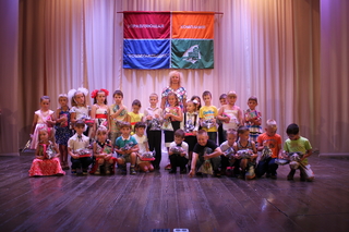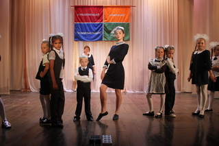 Пока дети рассматривали подарки, на сцене начался показ мод: юные модели продемонстрировали несколько образцов школьной формы, пошитой в одном из юргинских швейных ателье.