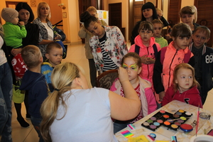 Дети работников предприятий управляющей компании "Коммунальщик" собрались на площади перед ДК "Победа". Здесь их ждали веселые клоуны, предлагавшие поучаствовать в конкурсах и эстафетах. После каждого правильно и быстро выполненного задания клоуны называли буквы, из которых затем нужно было составить слово. Те, кто уставал, направлялись в фойе, где мастера аквагрима разрисовывали лица ребят.