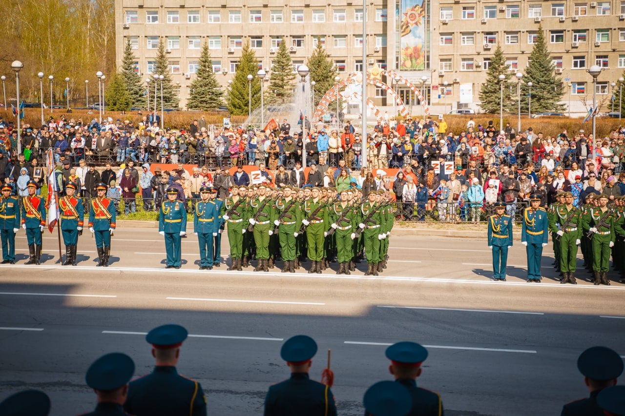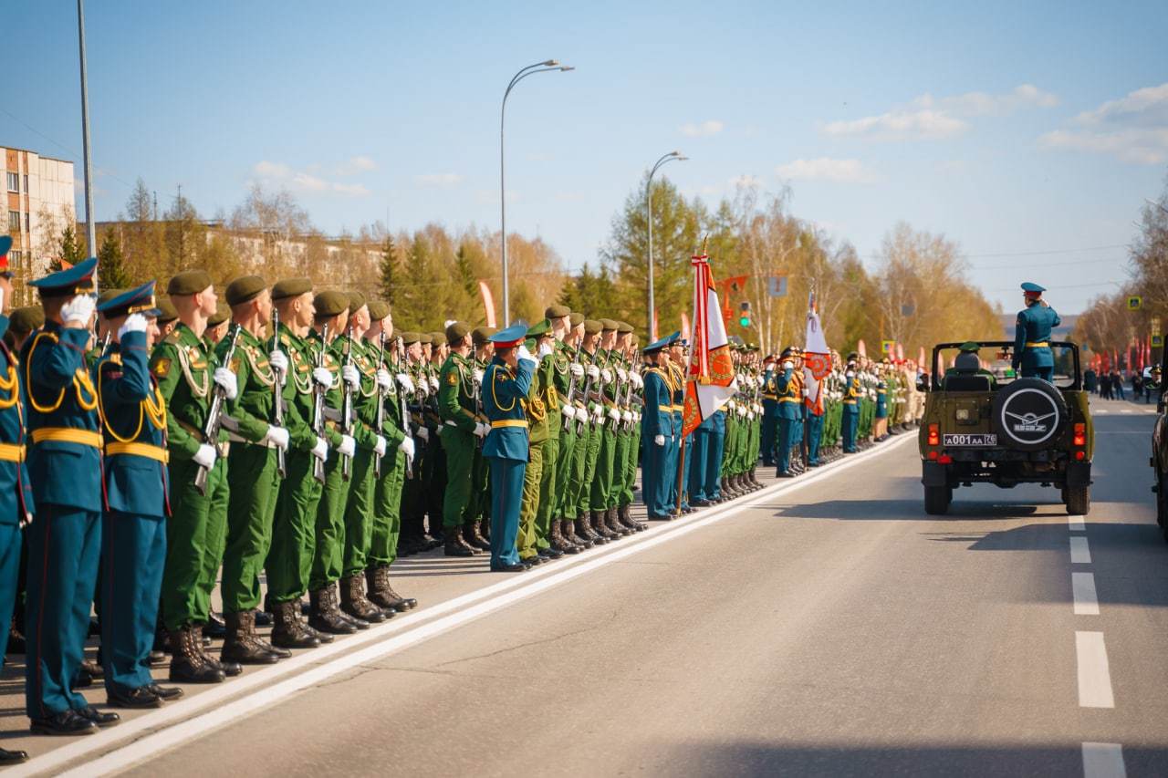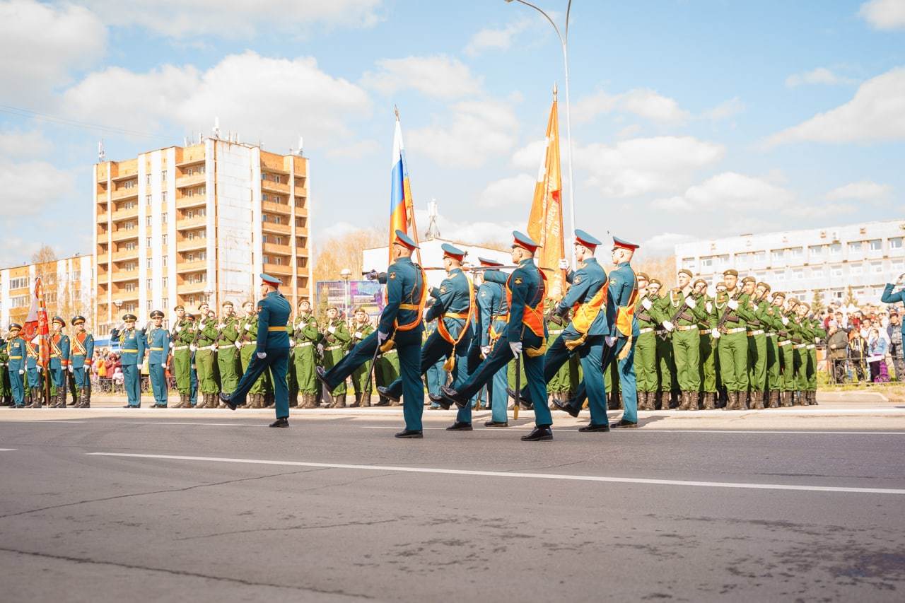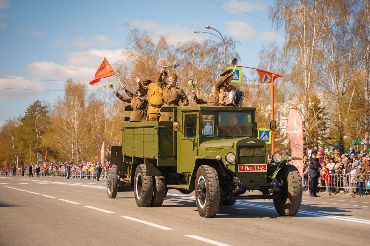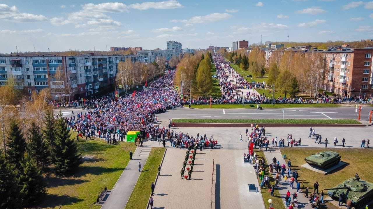 Парад Победы в Юрге с торжественным маршем и митингом.
