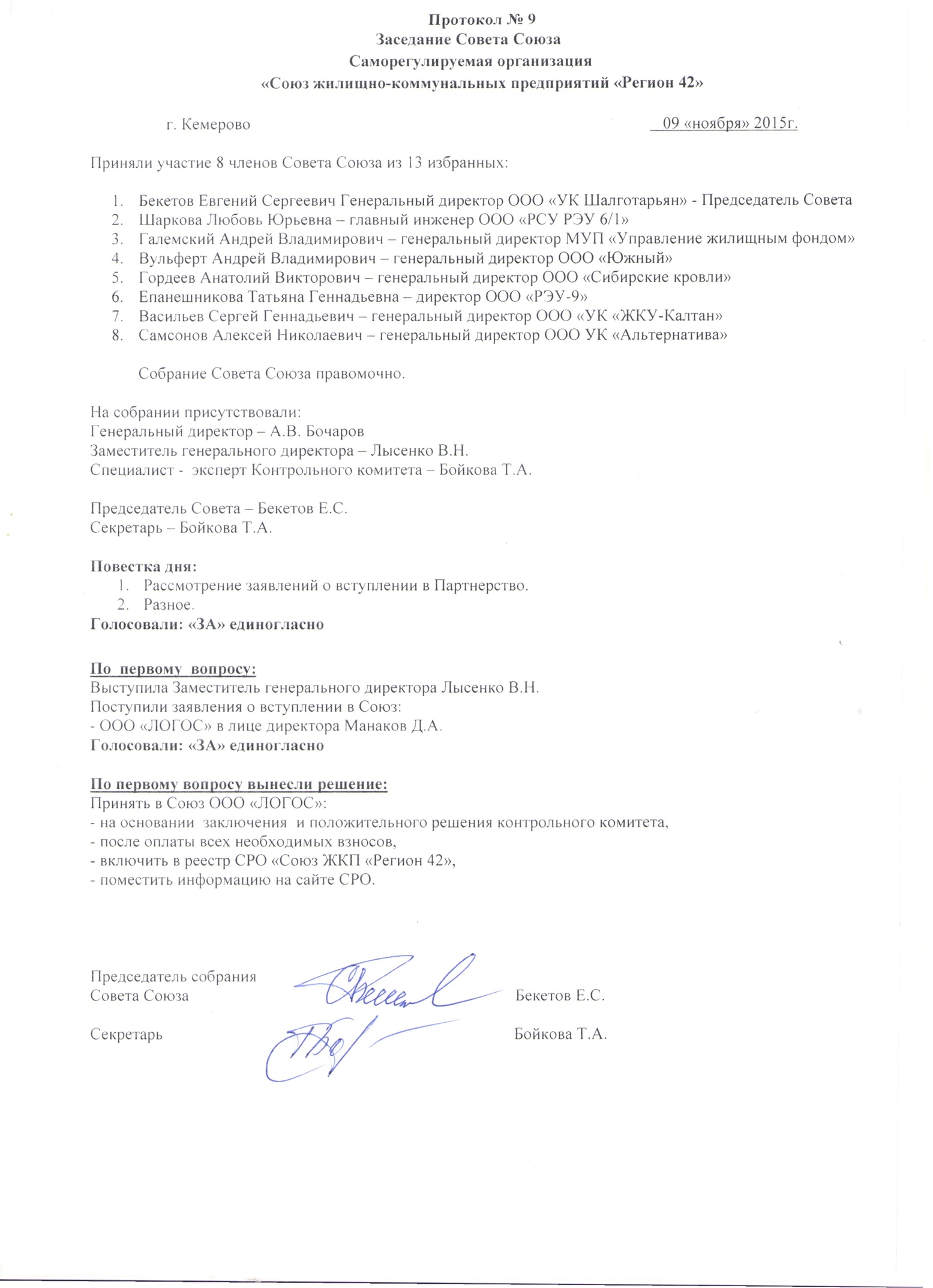 Опись документов, необходимых для вступления в СРО "Союз ЖКП "Регион 42"