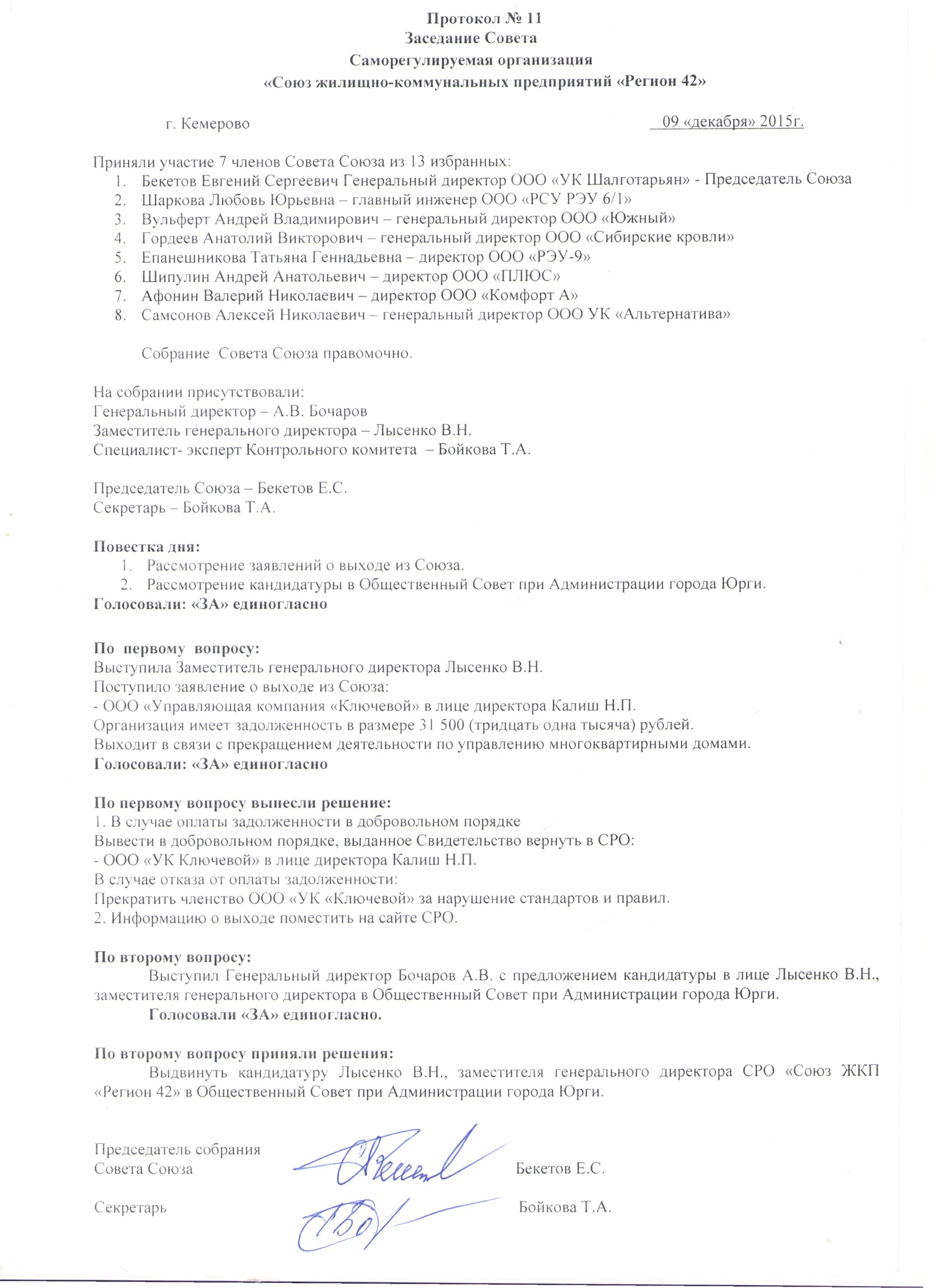 Протокол № 11 от 09.12.2015