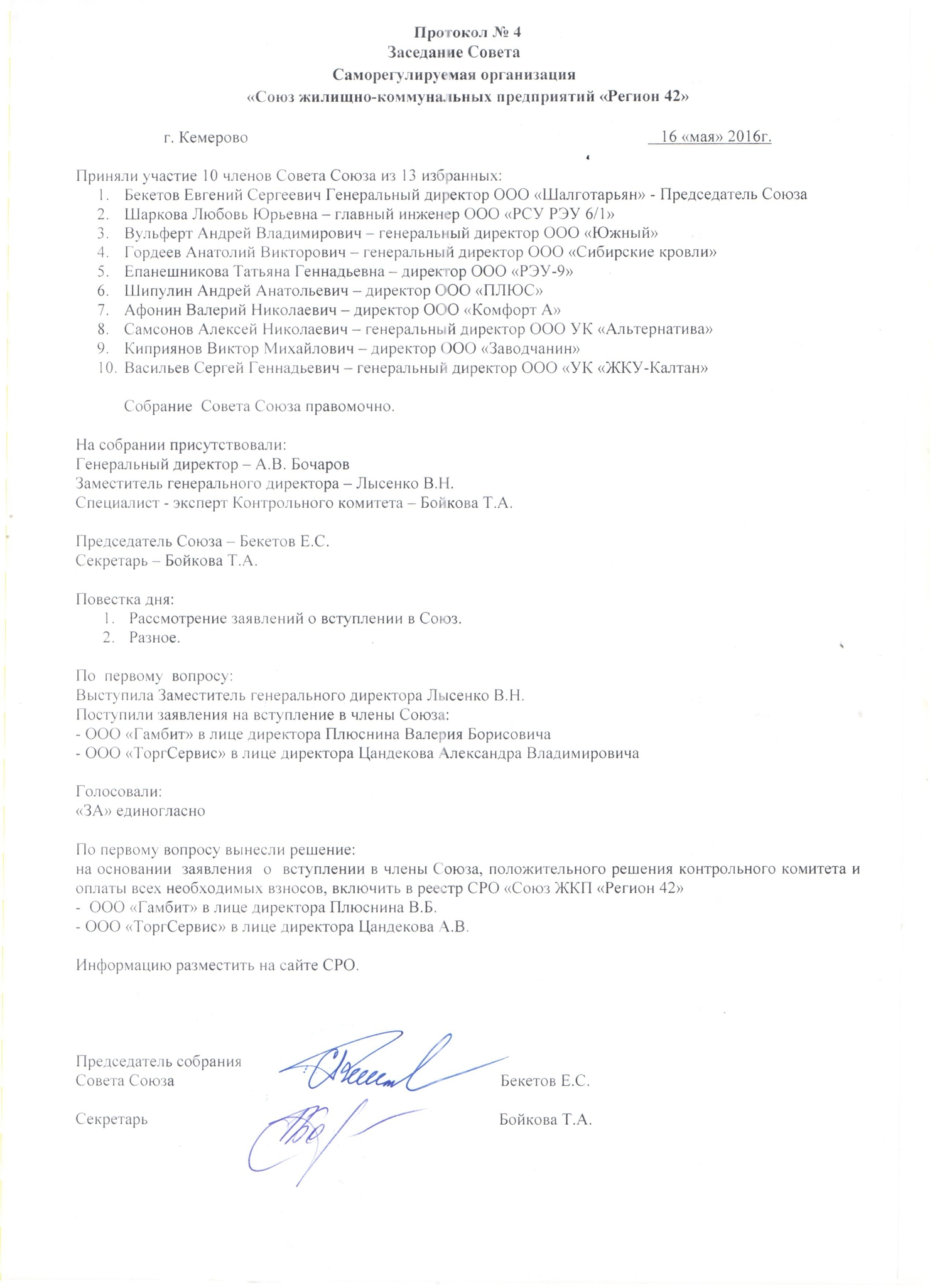 Протокол № 4 от 16.05.2016