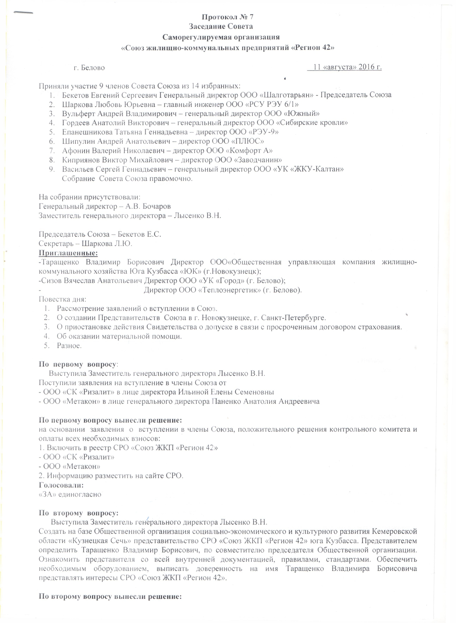Опись документов, необходимых для вступления в СРО "Союз ЖКП "Регион 42"