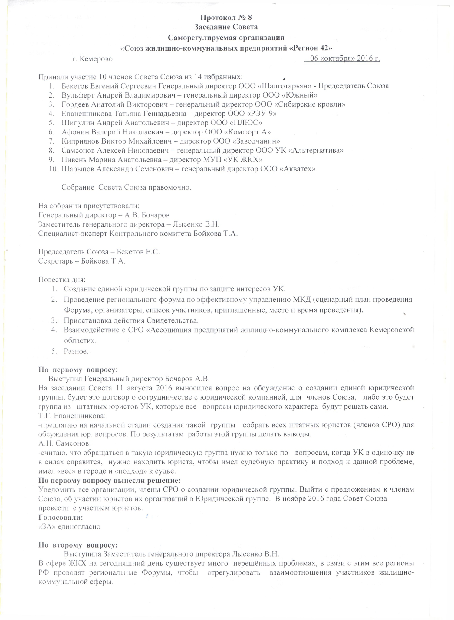 Опись документов, необходимых для вступления в СРО "Союз ЖКП "Регион 42"