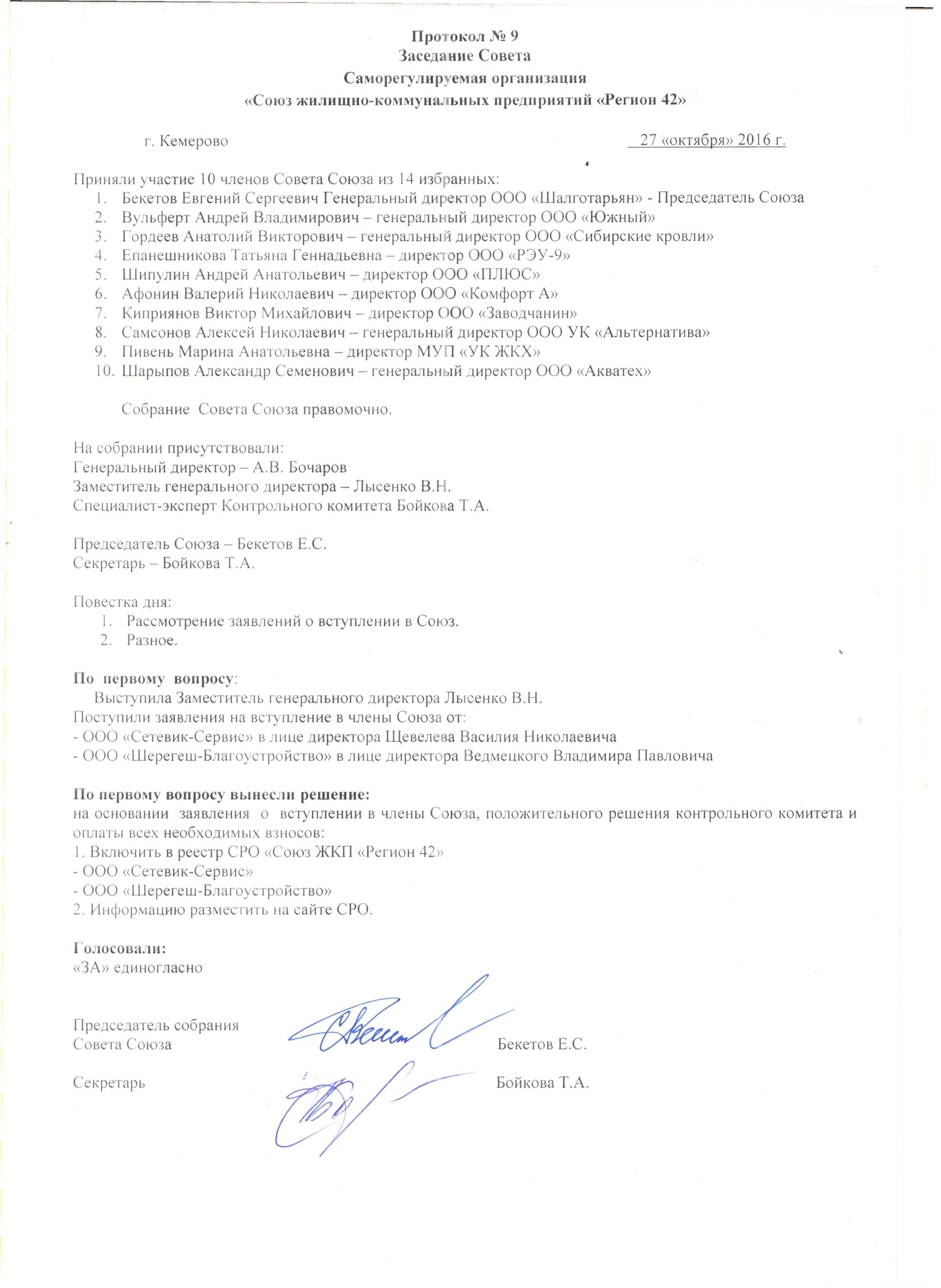 Опись документов, необходимых для вступления в СРО "Союз ЖКП "Регион 42"